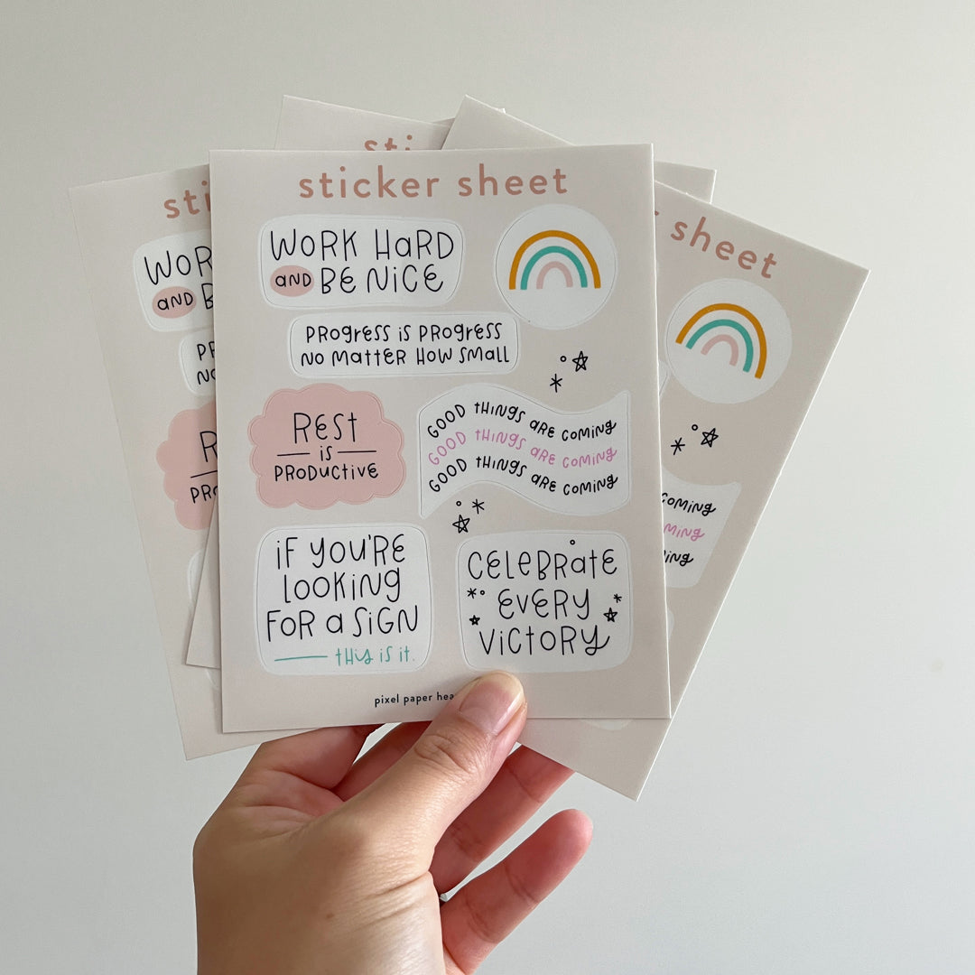 stickers on a sheet! printed on soft matte vinyl, use them to decorate whatever your heart desires!