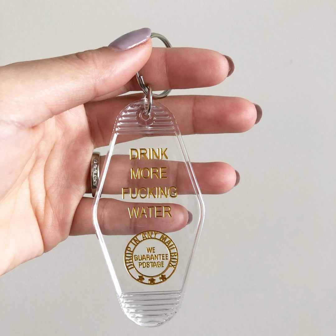 inspired by the minimal and classic design of vintage hotel / motel key tags from the 1950’s. we took some of our fave sayings and phrases that inspire us and put them on these key tags, so we can see them every day!
