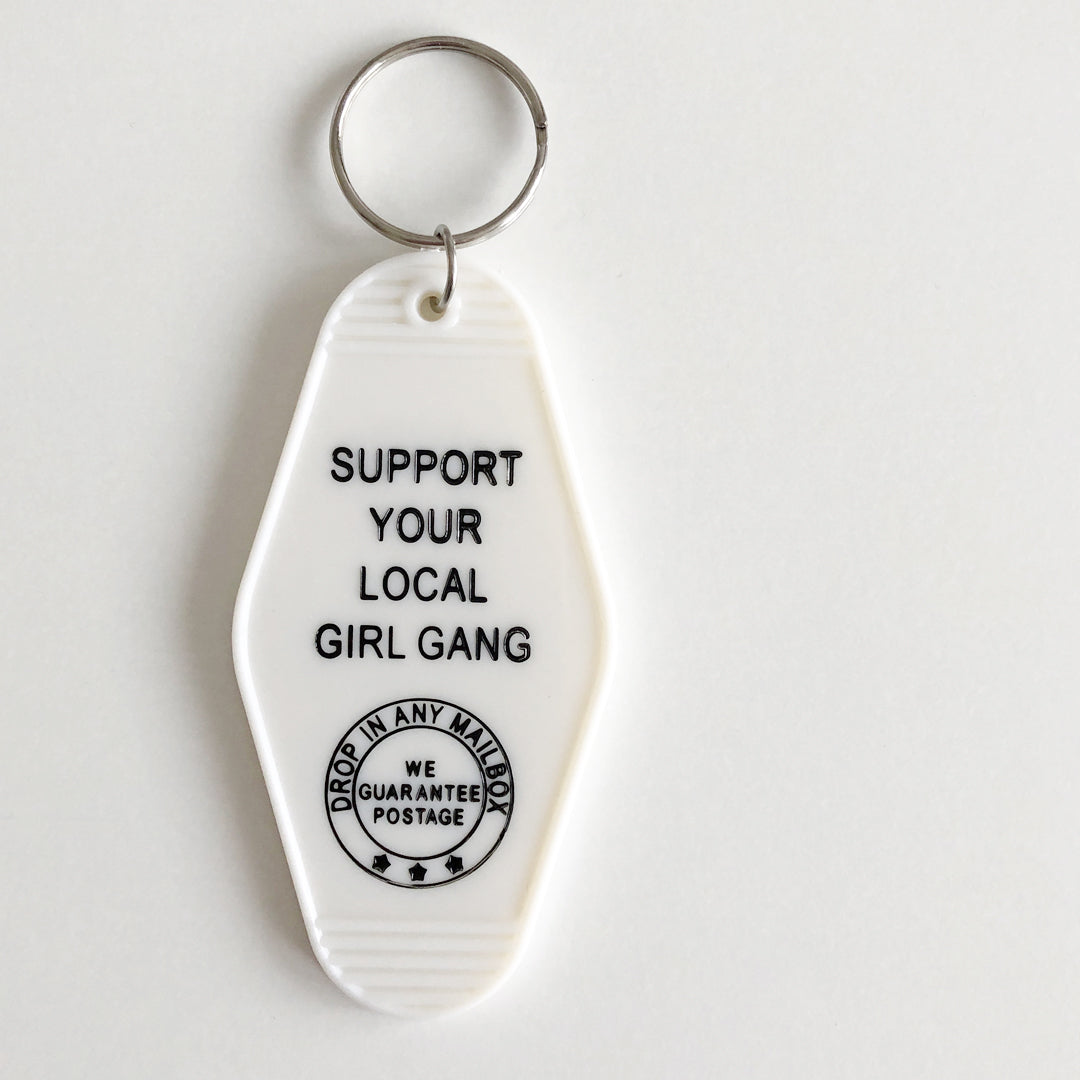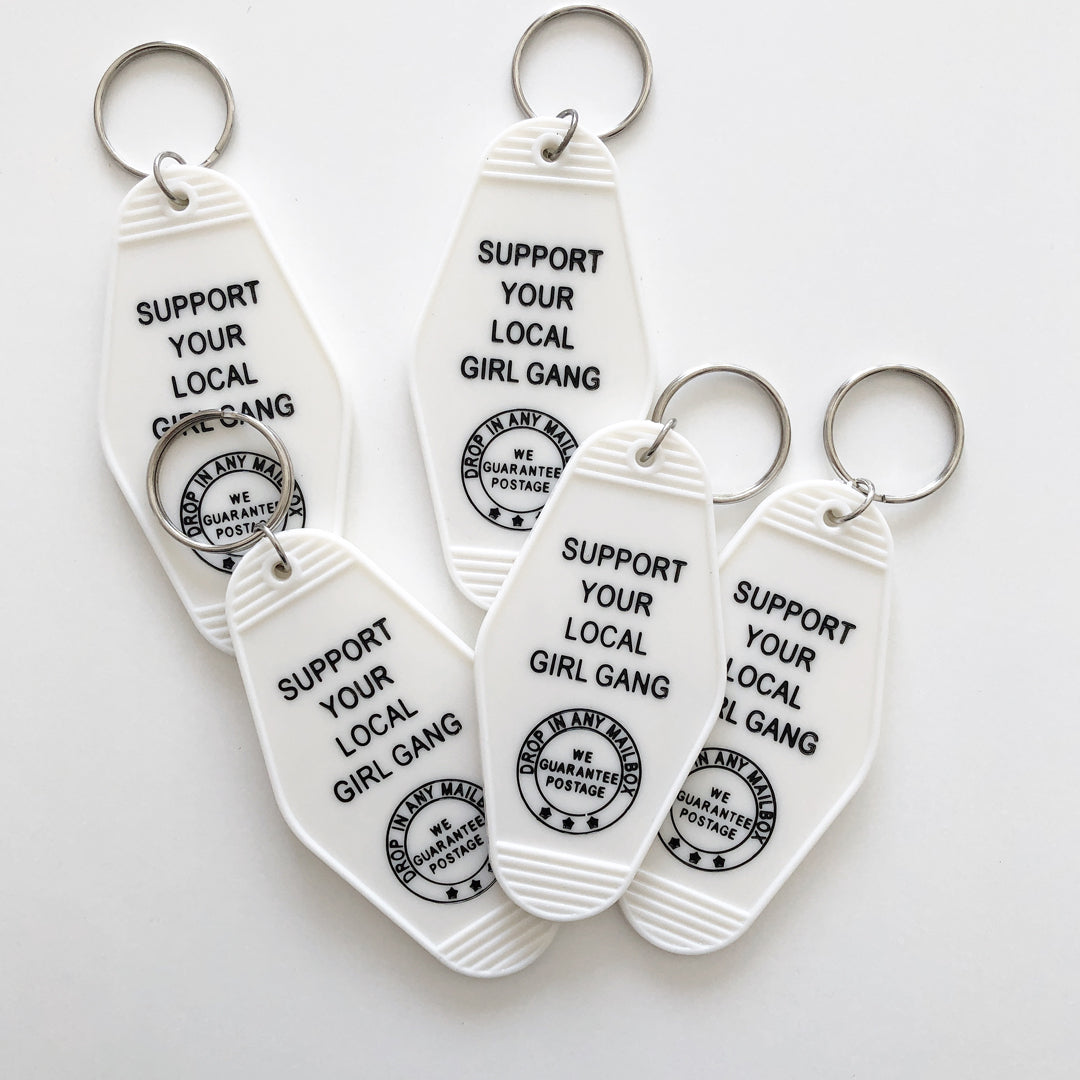 DISCLAIMER: the ‘drop in any mailbox’ circle logo on the bottom of each key tag is purely for aesthetic purposes. this was kept in the design to mimic the feel of the key tags they were inspired by. this is not a service that we offer or a service that comes with the purchase of this key tag.