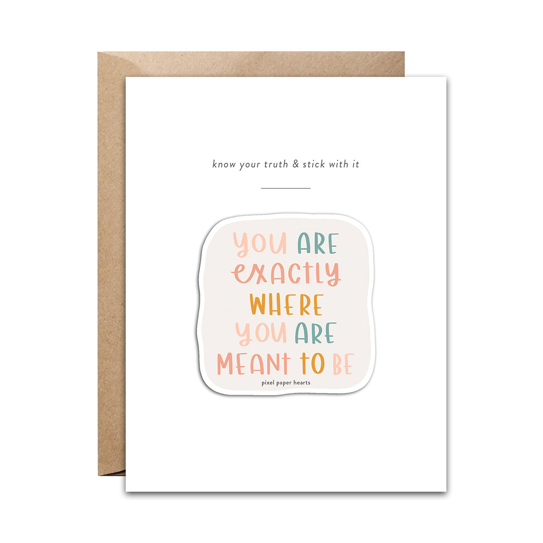 • A2 folded card (4.25" x 5.5") greeting card with one of our vinyl stickers affixed on the front
