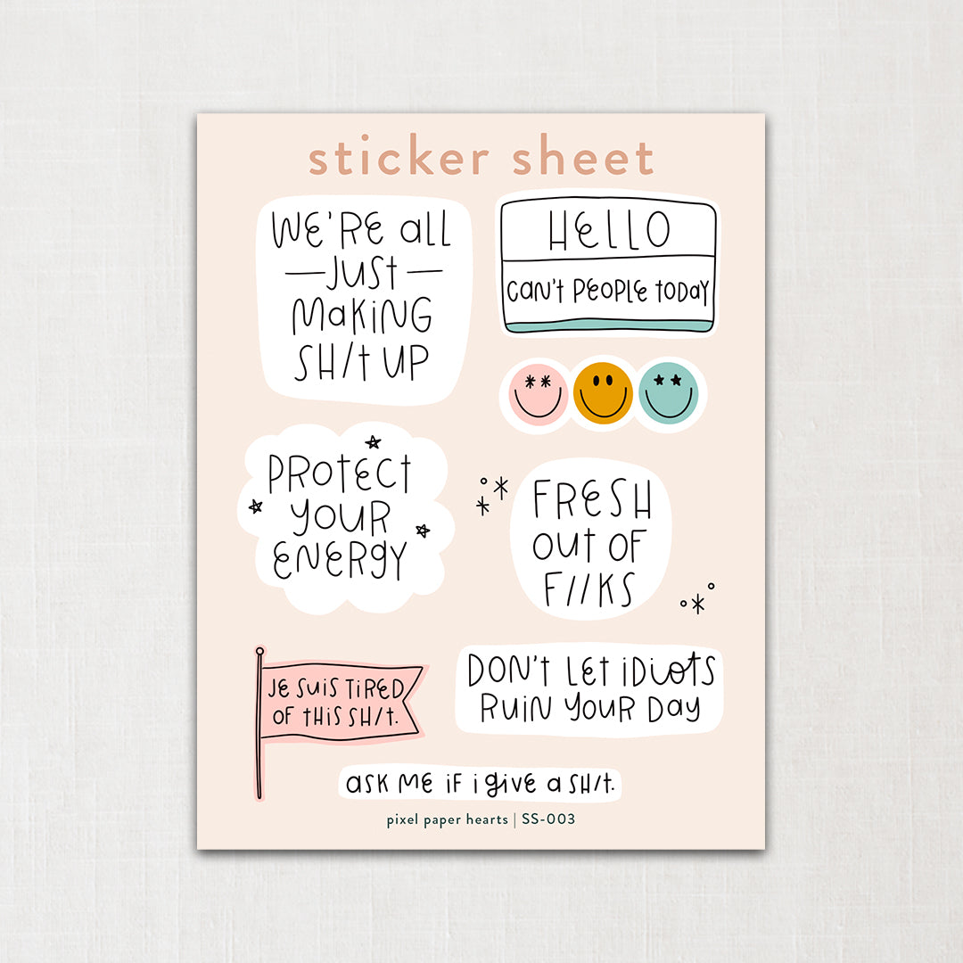 stickers on a sheet! printed on soft matte vinyl, use them to decorate whatever your heart desires!