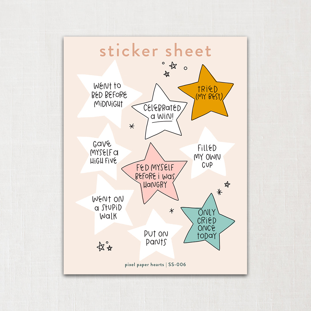 stickers on a sheet! printed on soft matte vinyl, use them to decorate whatever your heart desires!